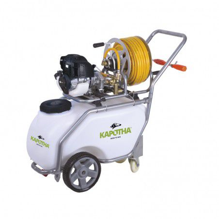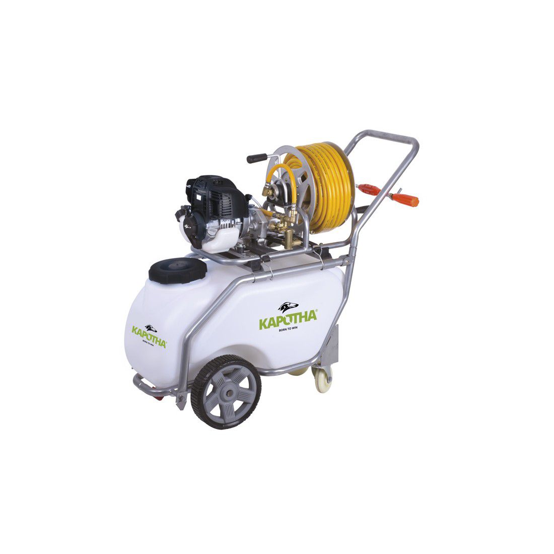 La fumigadora de carretilla Kapotha, modelo K-S50C incorpora un motor de gasolina 2 tiempos de 25.6 cc y 1,4 caballos de potencia. Tiene un depósito de grandes dimensiones, 50 litros de capacidad para que no pierda ni un segundo de trabajo.